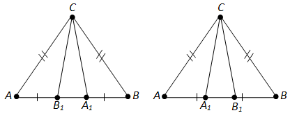 На основании AB равнобедренного треугольника ABC даны точки A1 и B1. Известно, что AB1 = BA1. Докажите, что треугольники AB1C и BA1C равны.