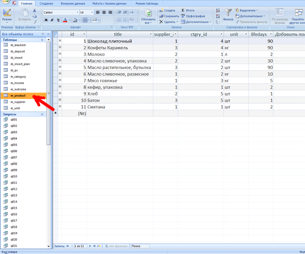 Для того чтобы увидеть содержимое таблицы, щелкните дважды на названии таблицы на панели слева: