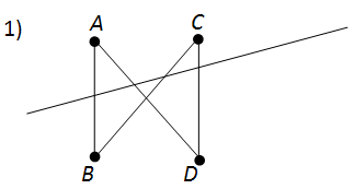 1) Агар порчаҳои AB, BC ва CD хати ростро буранд, оё порчаи AD хати ростро мебурад?