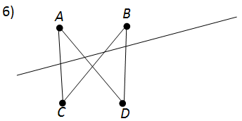 3) отрезки AB и CD пересекают прямую, а отрезок BC не пересекает; 4) отрезки AB и CD не пересекают прямую, а отрезок BC пересекает; 5) отрезки AB, BC, CD не пересекают прямую; 6) отрезки AC, BC и BD пересекают прямую? Объясните ответ.