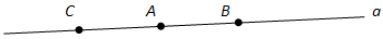 Масъалаи 5. Хати рости a гузаронед. Дар хати рост ягон ду нуқтаи A ва B-ро нишона кунед. Акнун нуқтаи C-ро чунон нишона кунед, ки нуқтаи A дар байни нуқтаҳои B ва C воқеъ шавад.